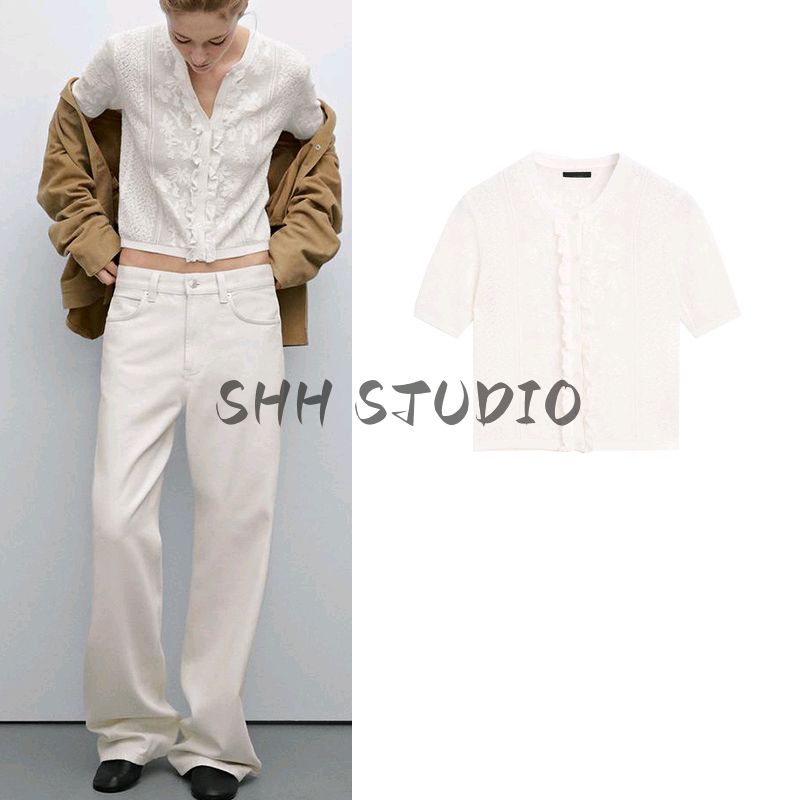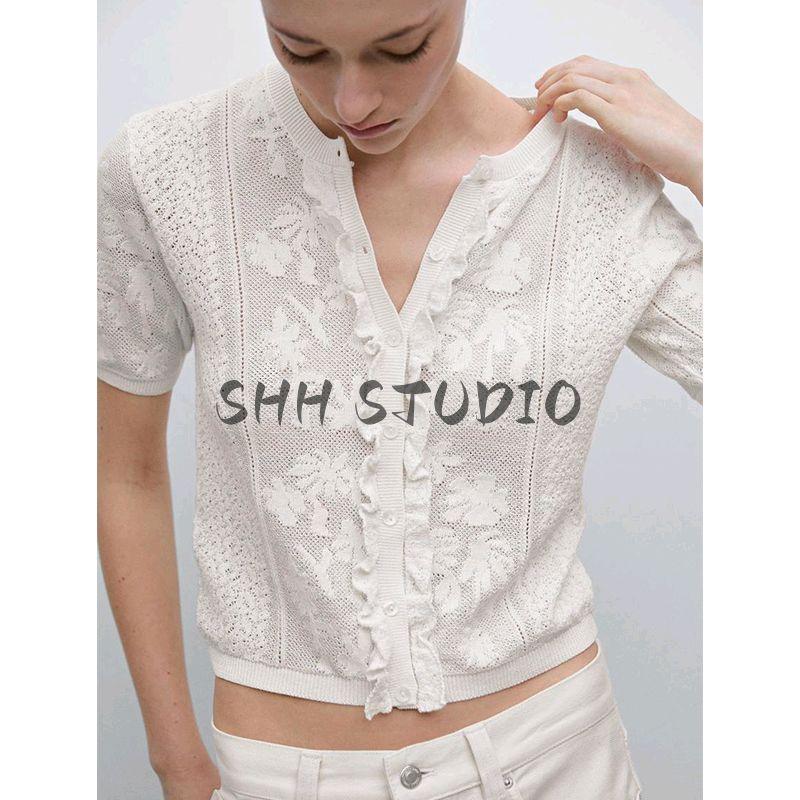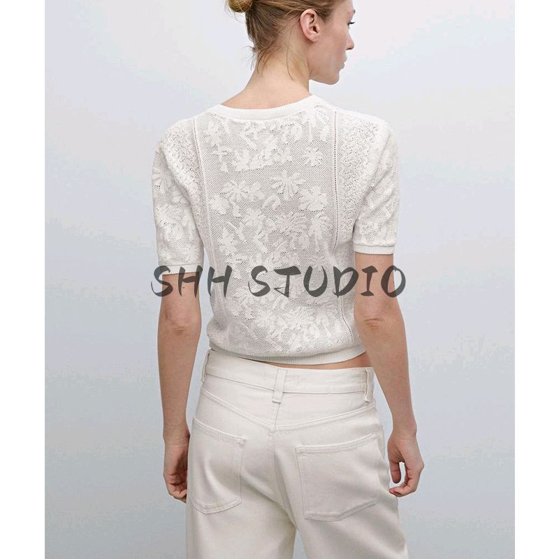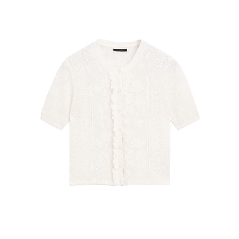 MD Spring/Summer New Arrival Women's Clothing French Romantic Style Exquisite Lace round Neck Short Sleeve Knitting Cardigan 5716677