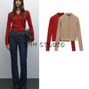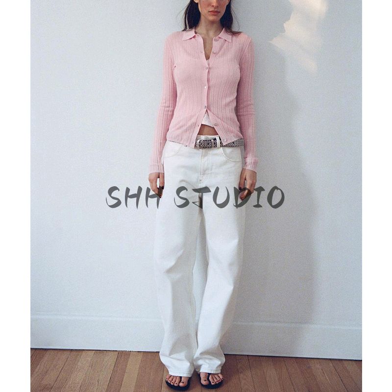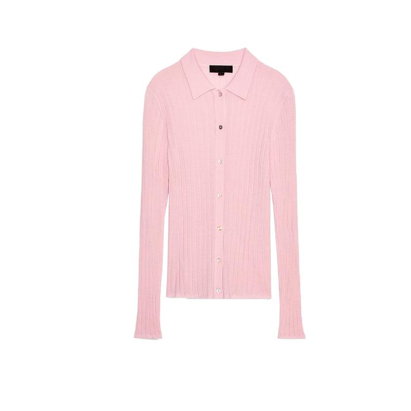 Spring New Women's Clothing Wool Blend Ribbed Polo Shirt Collar Long Sleeves Knitting Cardigan Outwear 2142048