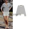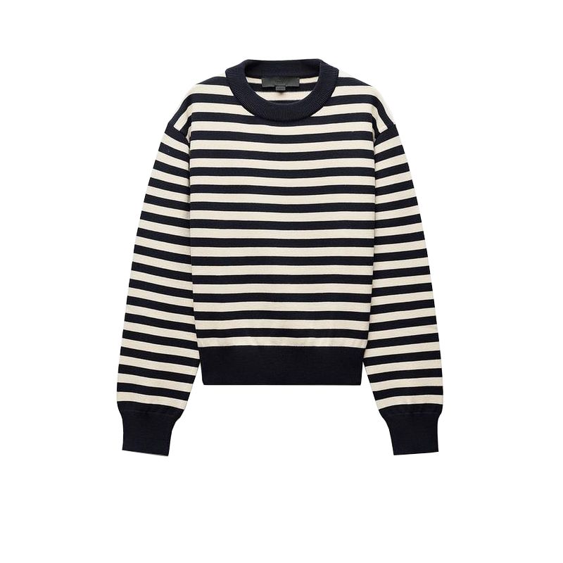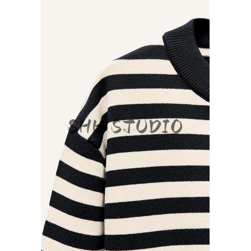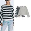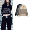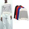 Spring New Women's Clothing Retro Crew Neck Long Sleeves Stripes Casual Short Sports Knitwear 5536009