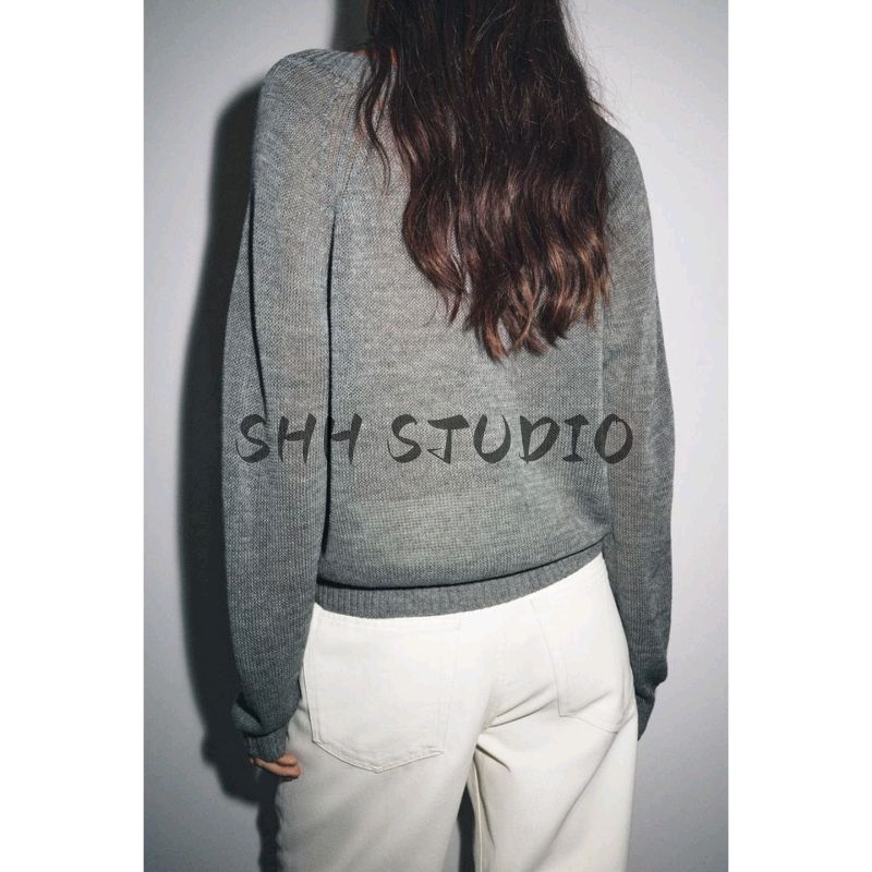 Fall New Women's Clothing French Rib Closing Baker Style off-Neck Long Sleeves Knitwear 2142135