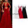 Весенне-летняя новая женская одежда, стиль для морского отдыха, V-образный вырез, без рукавов, с открытой спиной, завышенная талия, длинное А-силуэтное платье с разрезом
