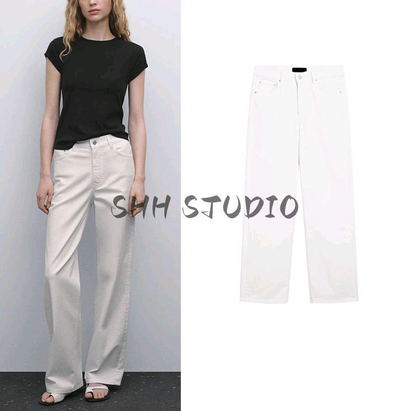 MD Spring/Summer New Arrival Women's Clothing Work Clothing Casual Fashion All-Matching White Straight-Cut Denim Pants 5023725