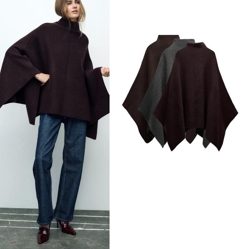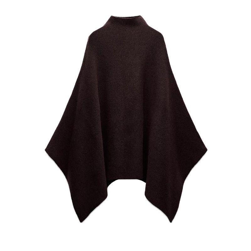 Осень и Зима Новое Женское Минималистичное Ретро Пальто-Кейп из Смесовой Ткани с Асимметричным Воротником-Стойкой 3739027