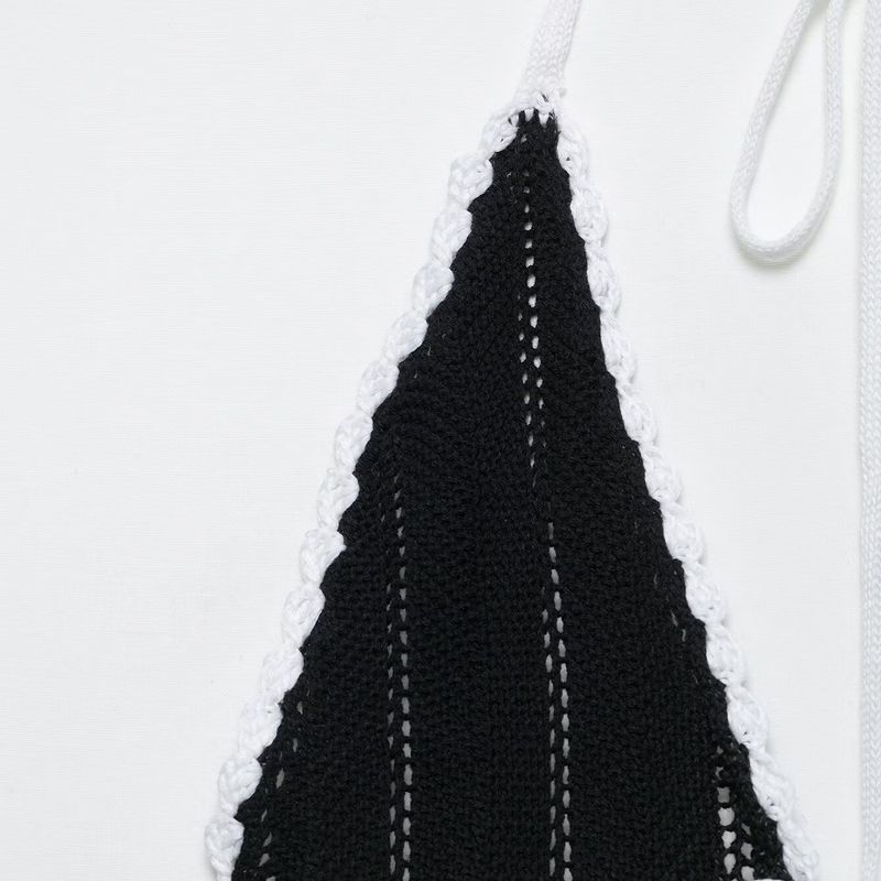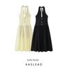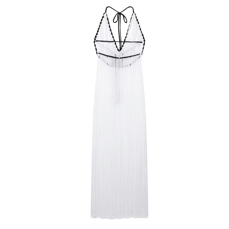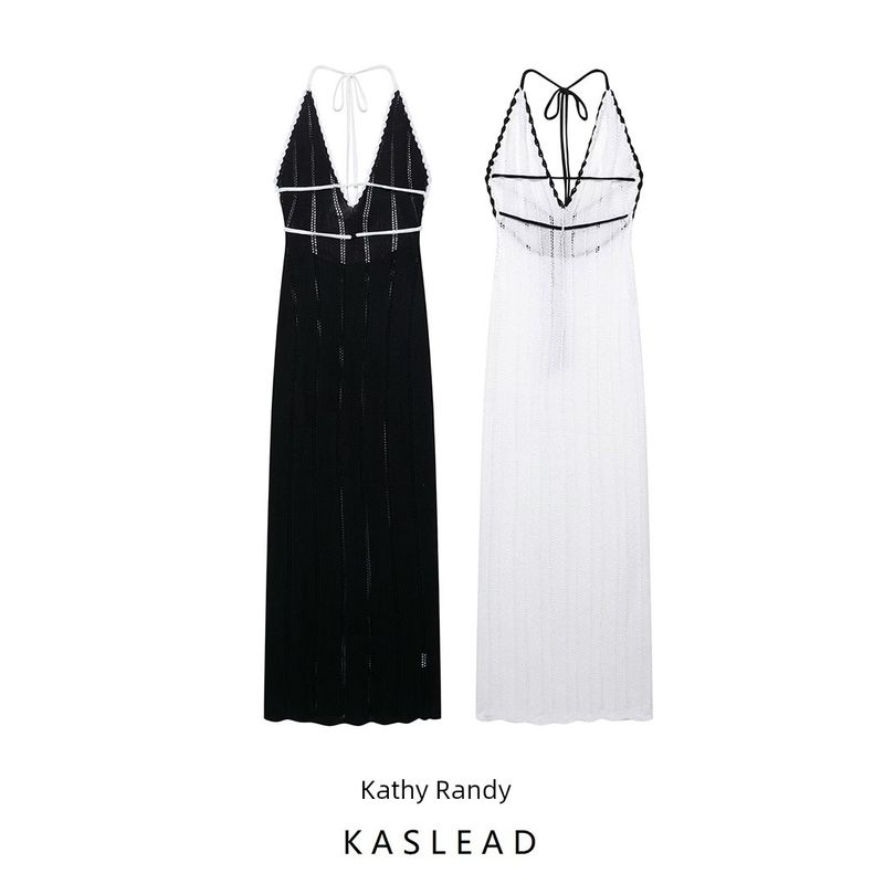 Kaslead Новая женская одежда Западный стиль Без спины На бретелях Слегка прозрачный дизайн Глубокий V-образный вырез Контрастное по цвету платье