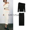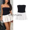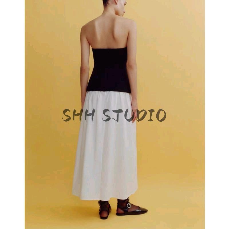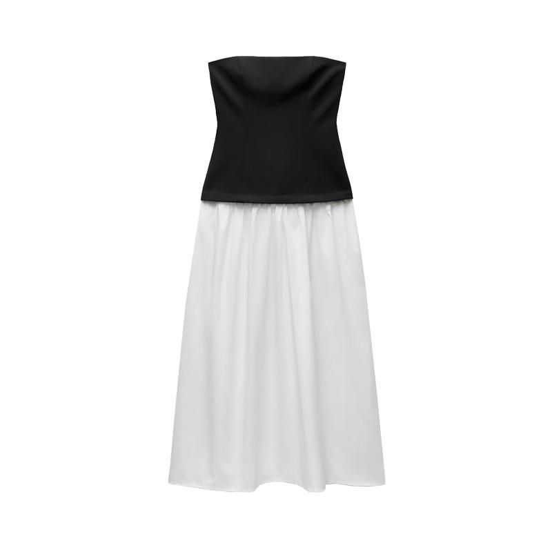 Spring New Women's Clothing Fashion Wind All-Matching Tube Top Patchwork Cold-Shoulder Straight Collar Midi Skirt Dress 4661309