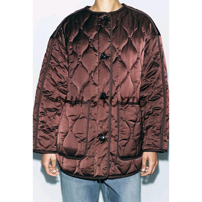 Spring New Women's Clothing Casual Minimalist Easiest for Match Silk Satin Texture round Neck Cotton Jacket Outwear 4088045