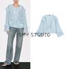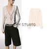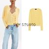 Spring New Women's Clothing Casual Style Laminated Decoration Elegant V-neck Simple Thin Knitwear 3456101