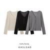 Kaslead New Arrival Women's Clothing Fashion Style Fashion Fastener Decoration Mohair Cardigan Sweater