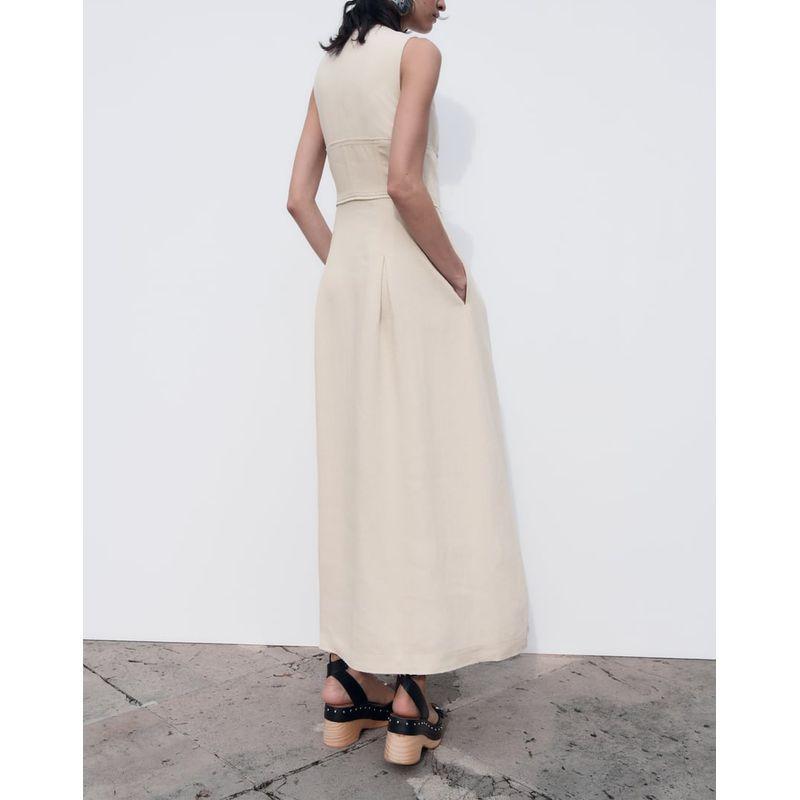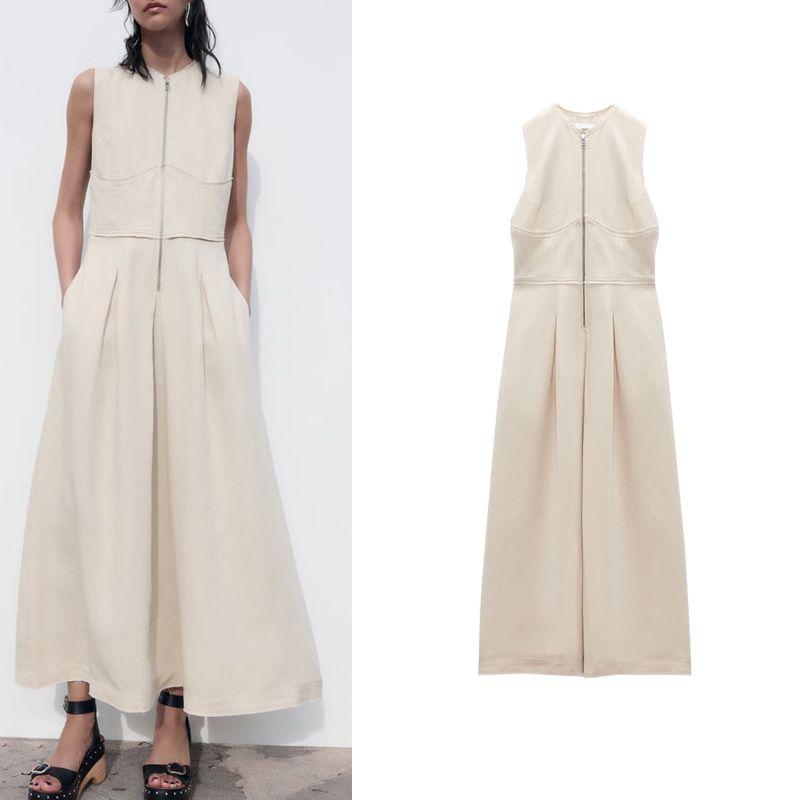 Spring New Arrival Sleeveless Long Jumper Dress Casual Elegant French Waist Zipper Dress 2902586