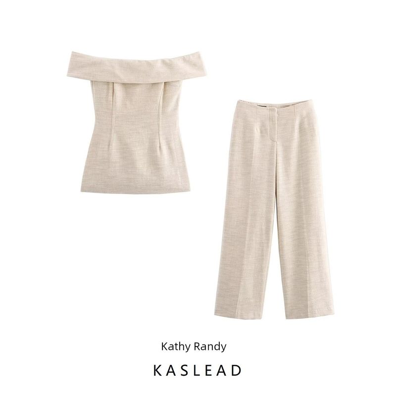 Kaslead New Arrival Women's Clothing Fashion Style Side Slit off-the-Shoulder Tops Long Pants 8202151 8199151