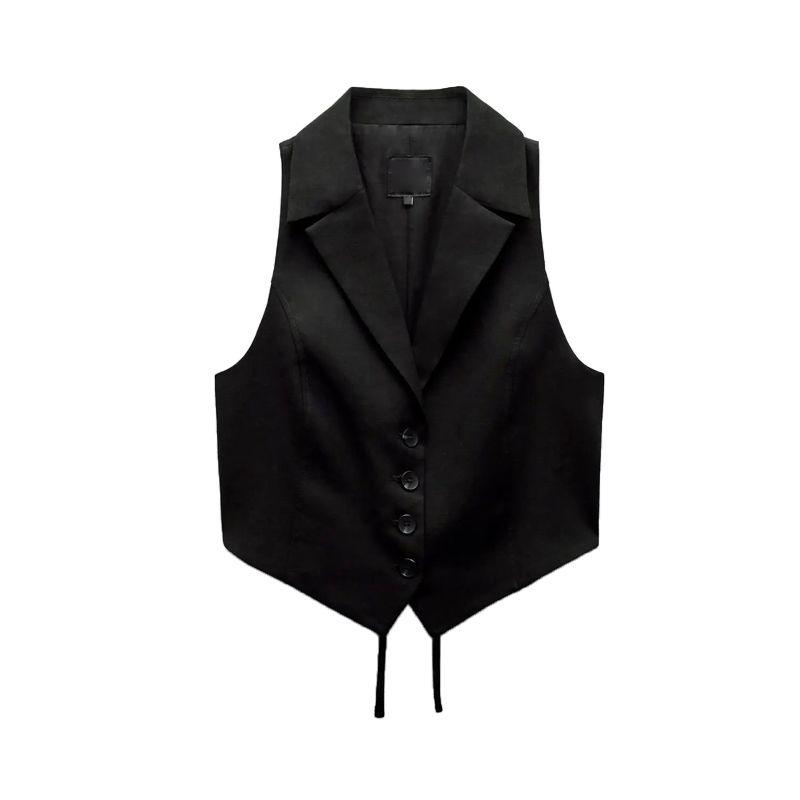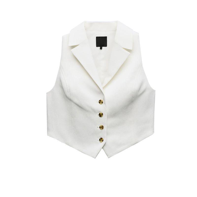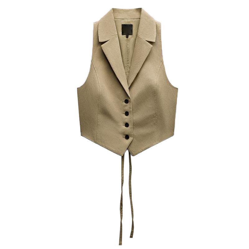 Весна Новая Модная Универсальная Жилетка с V-образным вырезом Без Рукавов Льняная Смесь Открытая Спина 4749764