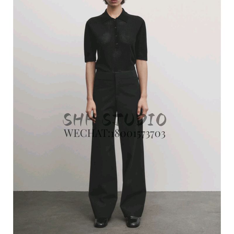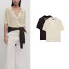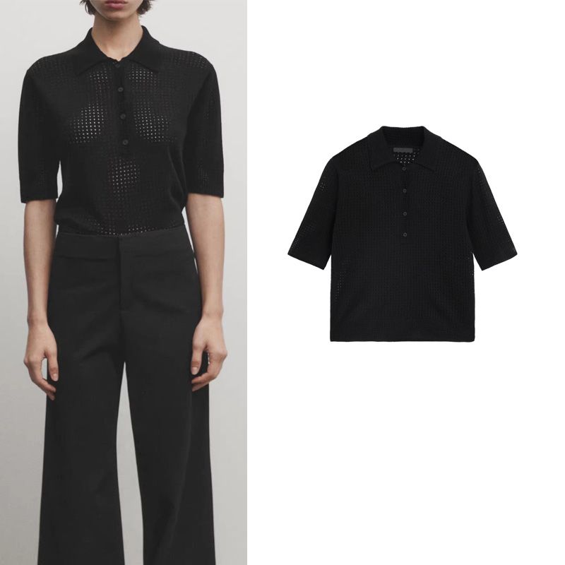 MD Spring New French Normcore Commute Style Hollow-out Short Polo Sweater with Short Sleeves Knitwear 5609620