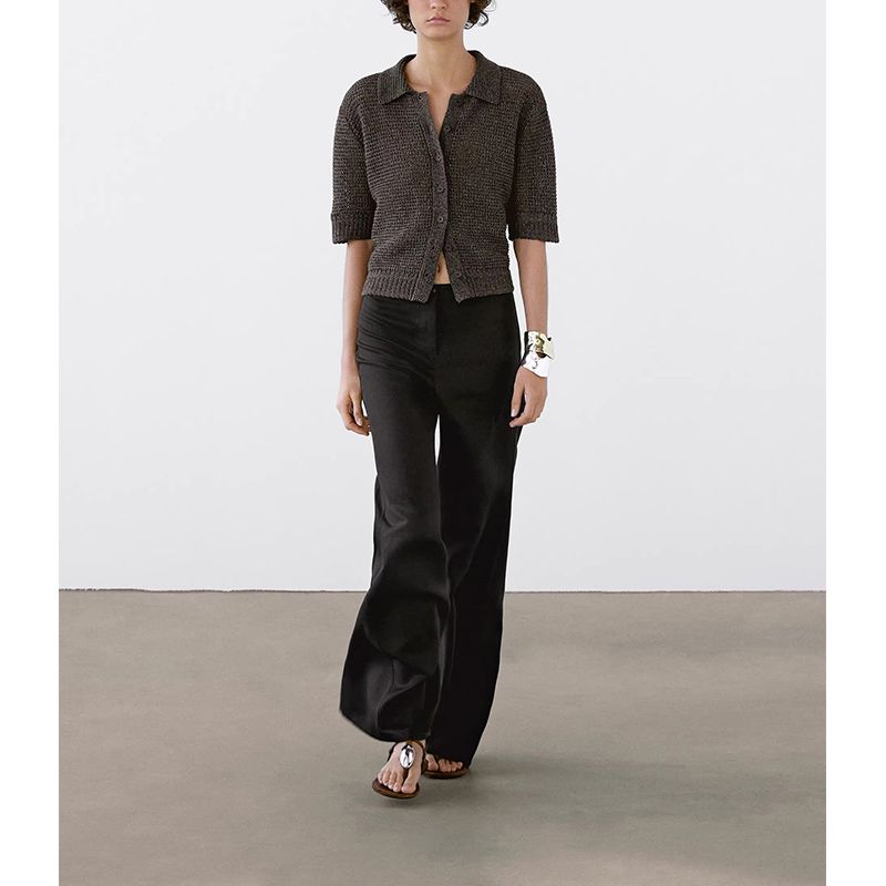 MD Spring and Summer Women's Clothing Old Money Style Relaxed Feeling Lazy Cut Out Polo Collar Short Sleeve Knitting Cardigan 5704559