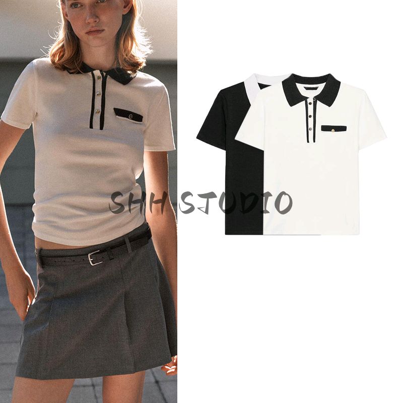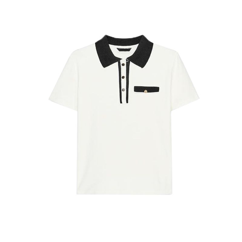 Весна Новая Женская Одежда Универсальный Контрастный Цвет Короткий Рукав Лацкан Простая Отделка Простая Рубашка Поло Футболка 5644155