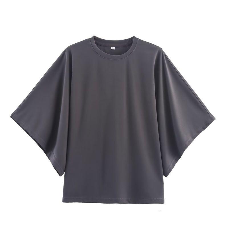 Kaslead New Women clothes Western Style Fashion Laminated Decorative Sleeve round Neck Short Sleeved T-shirt 4424154