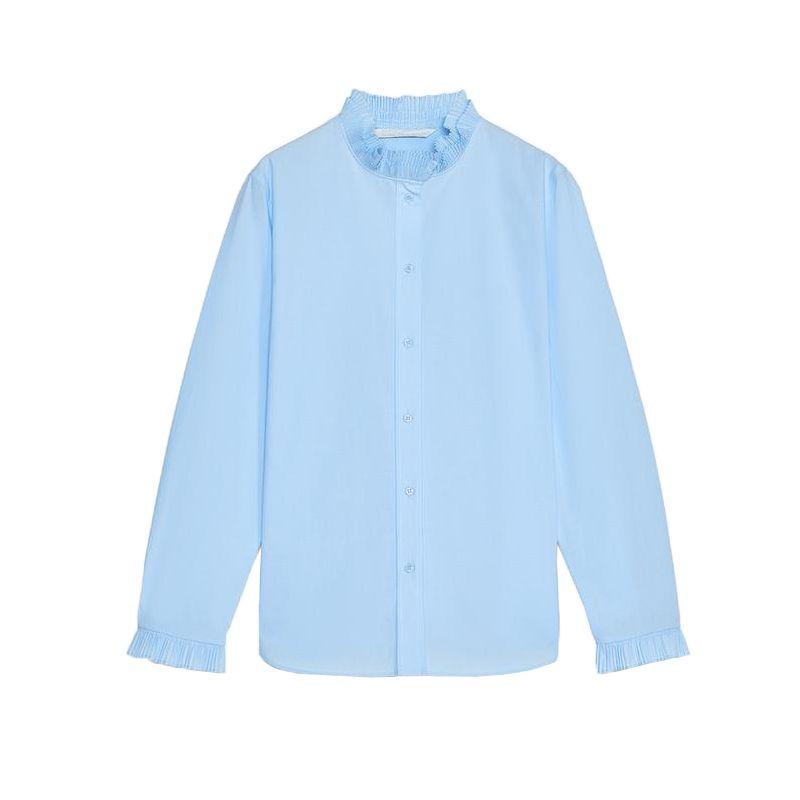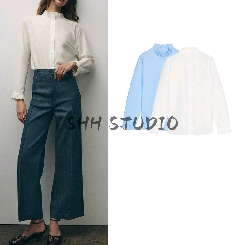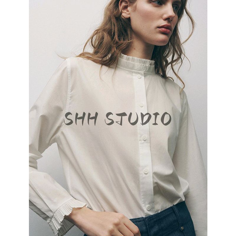 Spring New Women's Clothing Asymmetric Circular Lower Hem Long Sleeves Laminated Decoration Cotton Shirt 4786060