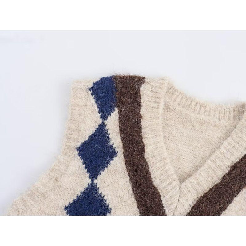 Kaslead New Arrival Women's Fashion Style Minimalist Retro Contrast Color Maillard Quilted Waistcoat Vest Vest