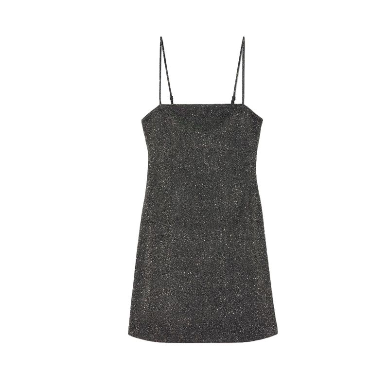 Summer New Arrival Women clothes Sexy Style Metal Color Line Trim Straight Collar Sleeveless Short Sling Dress 1067220