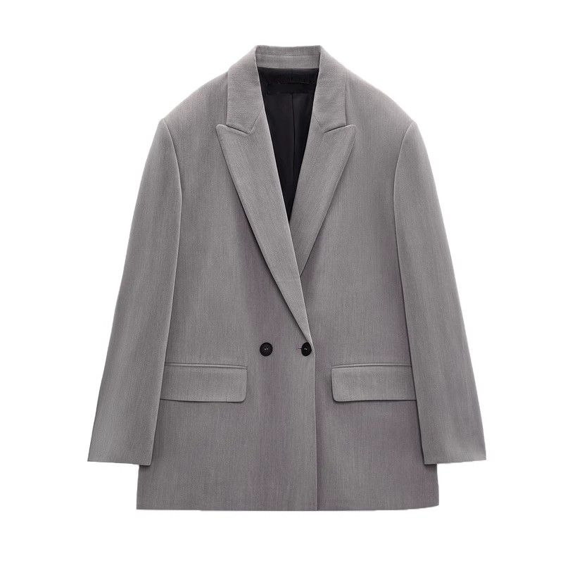 Для новой осенней женской одежды Рабочая одежда Повседневная с воротником поло Длинные рукава Двубортный Свободный пиджак 2753132