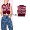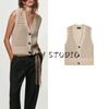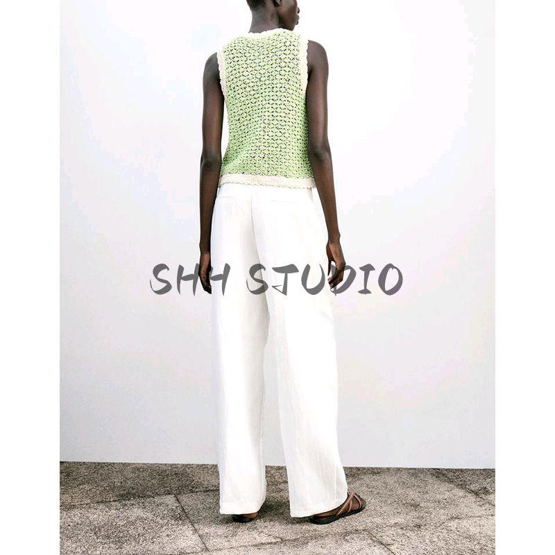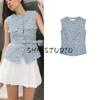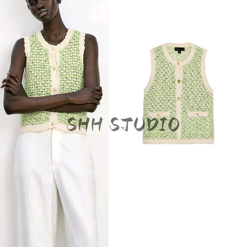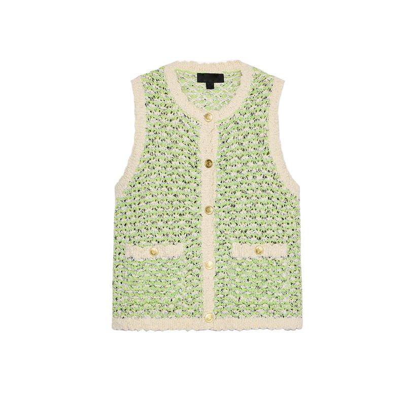 Summer New Arrival Women's Clothing Decorated Row Button Contrast Color Texture Sleeveless round Neck Knitting Vest Jacket 3991014