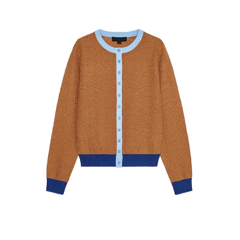 Spring New Women clothes Idle Style Color Matching Cardigan Fashion round Neck Long sleeve Knitted Outerwear 9598082