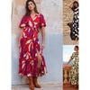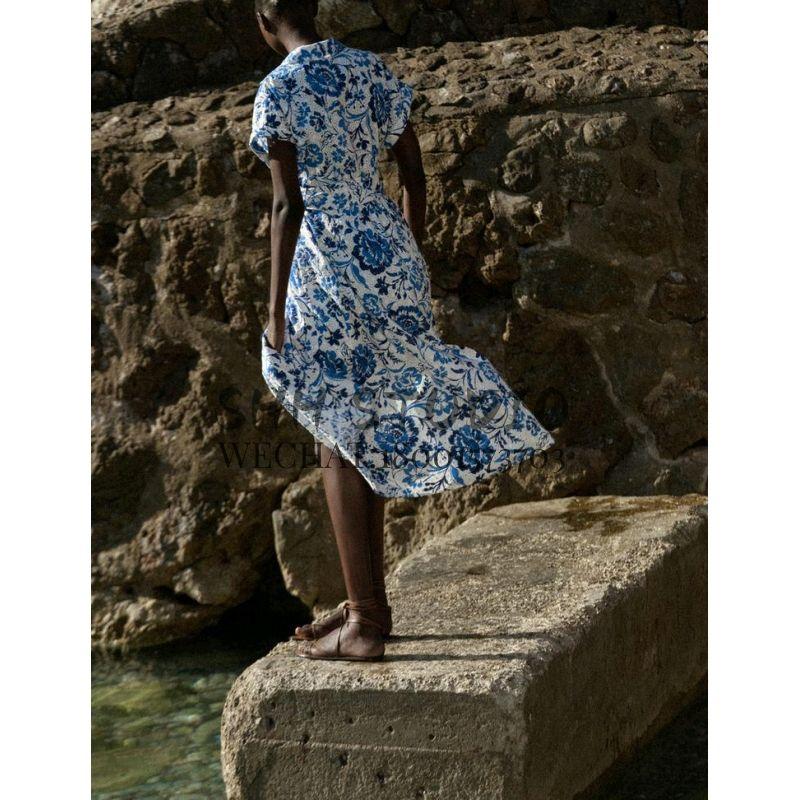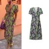 Spring New European and American Socialite Vacation Style V Neck Short Sleeve Mid-Length with Belt Print Dress 2901722