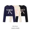 Kaslead New Women clothes Western Style Fashion Simple Bow Decoration Knit cardigan