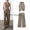 MD Spring/Summer French Style Young Ol Style Linen Blend Suit Vest 6024657 Wide Leg Pants 5021659