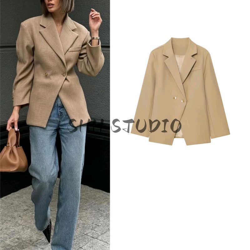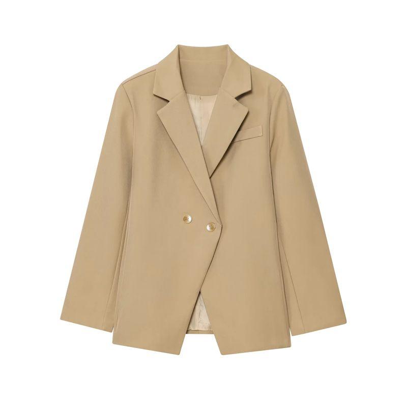 Осень Новая Женская Одежда Французский Стиль Повседневный Стиль Лацкан Длинные Рукава Две Пуговицы Приталенный Силуэт Слим Костюм Верхняя Одежда