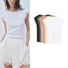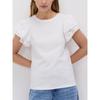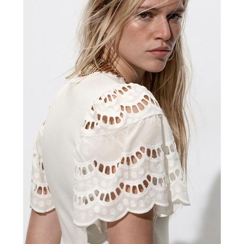 Spring and Summer New Women's Clothing Cotton Silm Straight-leg Cut Out Embroider Sleeves Crew Neck T-shirt Top 1058159