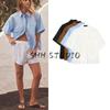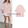 Autumn New Women's Clothing Pure Color Loose V Neck Short Sleeve Shirt 3848183 5344118 5344118