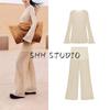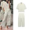 Spring New Women's Clothing Ins Style Lace High Waist Casual Trousers + V Neck Long Sleeves Lace Lace Cardigan Top