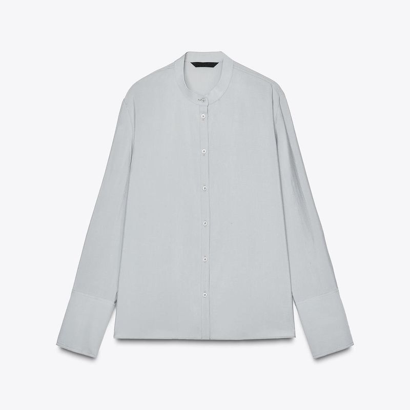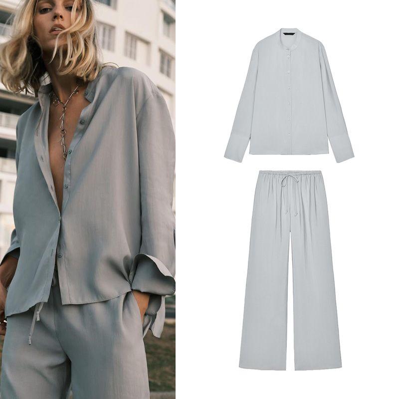Lyocell Blended Draping round Neck Long sleeve Shirts 4437046 Draping Mid Waist Wide Pants Pants 4437047