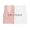 Spring and Summer New Women's Clothing Sweet Style Asymmetric Hem Laminated Decoration V Neck Sleeveless Tops 2917219