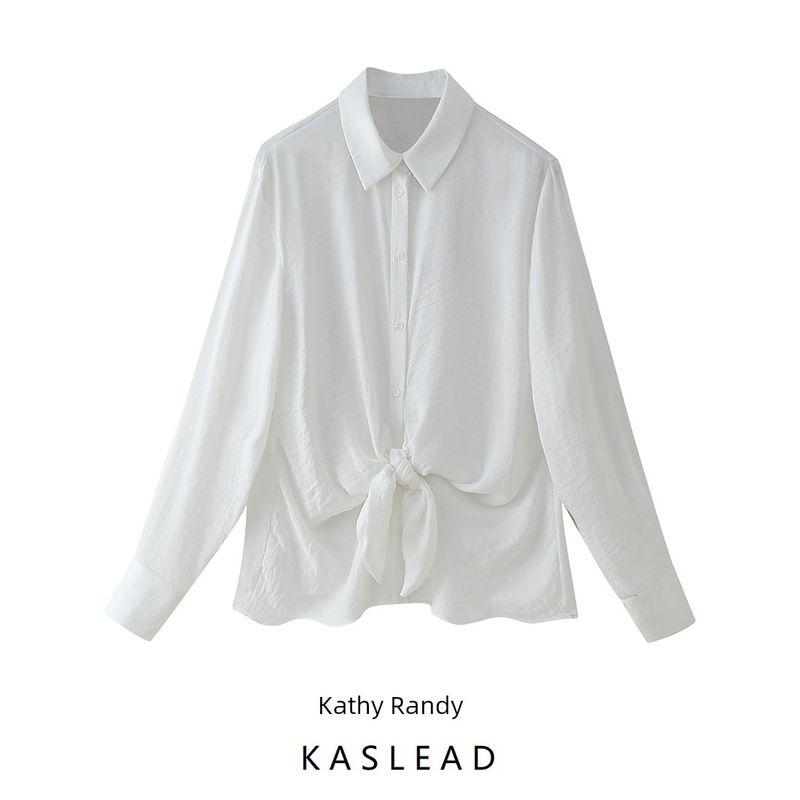 Kaslead Новое поступление Женская мода Стиль Галстук-бабочка Драпировка Свободный Длинный рукав Лацкан Повседневная рубашка 2298057