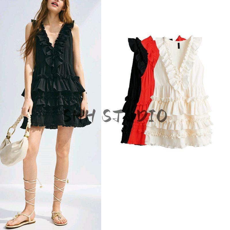 Summer New Arrival Women's Cotton French Frill Sleeveless Cake Dress Wave Chic Style Short Dress 1280381