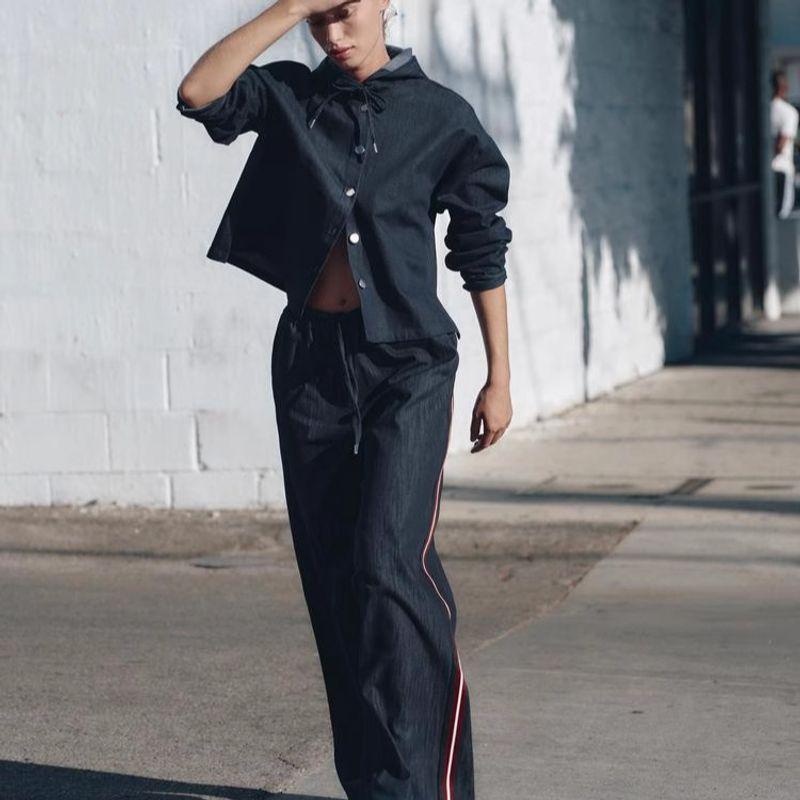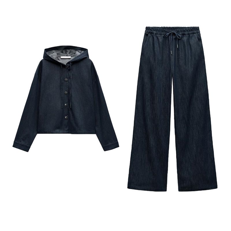 Весна Новая Женская Одежда Свободные Джинсовые Топы с Капюшоном 3564181 Полоски Джинсовый 3564180