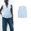 Summer New Product Women's Clothes Minimalist Style V Neck Sleeveless Cotton Laminated Decoration Cut Out Embroider Shirt 2971885