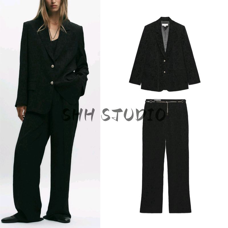 Autumn New Women clothes Jacquard Shoulder Pad Blazers 8629503 Chain Belt High-Waisted Trousers 1971261