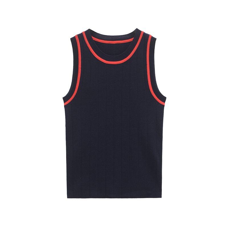 Kaslead New Arrival Women's Clothing Fashion Style Fashion Color Contrast Needle-Eye Sleeveless Knitting Tops 3519012
