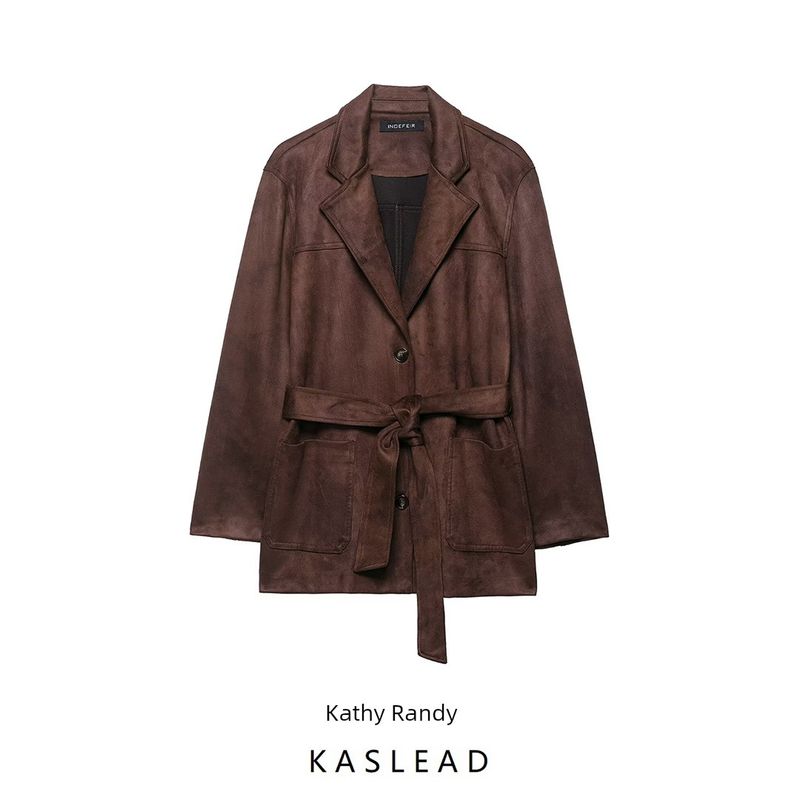 Kaslead Новая женская одежда Западный стиль С поясом Куртка с эффектом замши 49682210