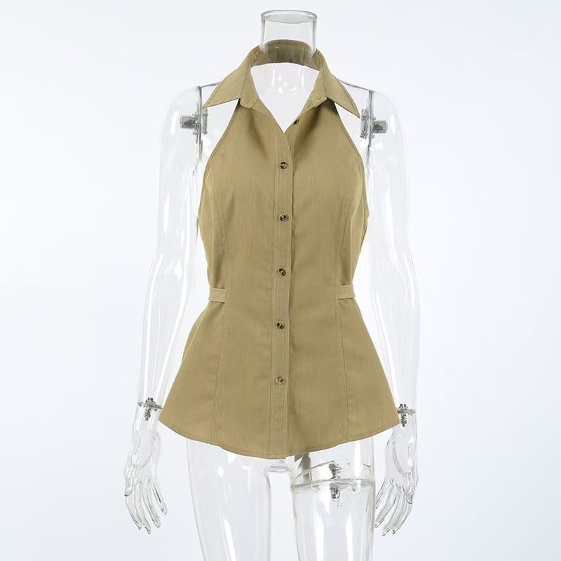 Western Style New Sleeveless Lapel Hanging Neck Sling Simple Slim fit Backless Top Sexy Backless Top