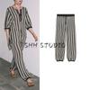 Летняя новинка Женская одежда Смесь американской вискозы Длинные широкие выцветшие полоски Драпирующиеся брюки со средней посадкой 3717040