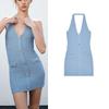 Spring and Summer New Women's Clothing Flip Stickers Pocket Decoration Short Sleeveless Square Collar Spaghetti Straps Knitted Dress 4192054