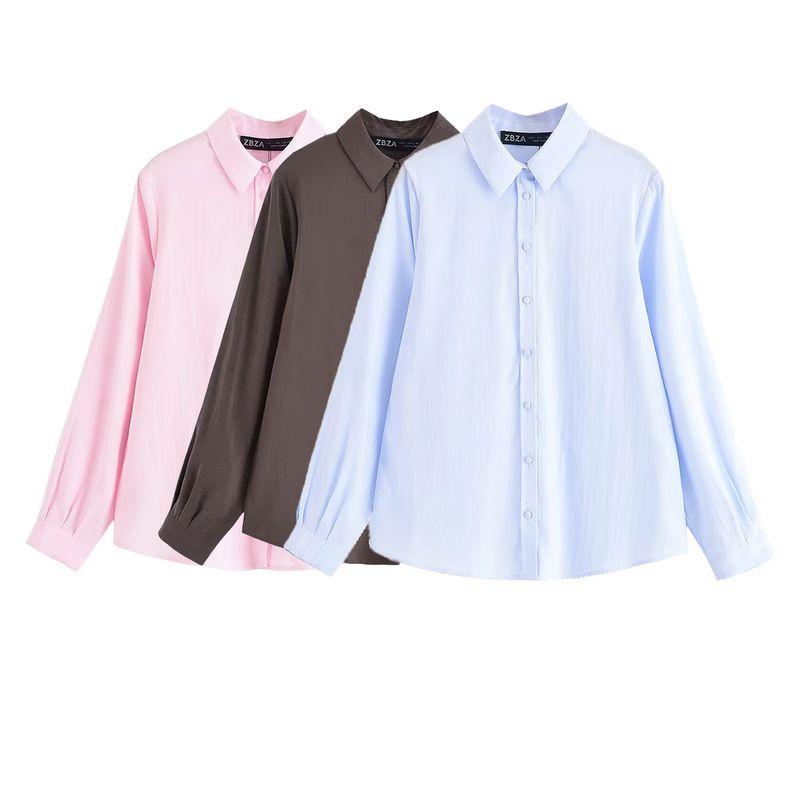 Kaslead New Women clothes Western Style Fashion Simple Solid Long sleeve Drape Shirts 2157222