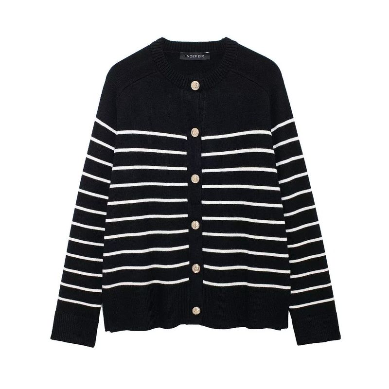 Kaslead New Arrival Women's Clothing Fashion Style Fashion Minimalist Stripes Knitting Long Sleeves Outwear 5536010