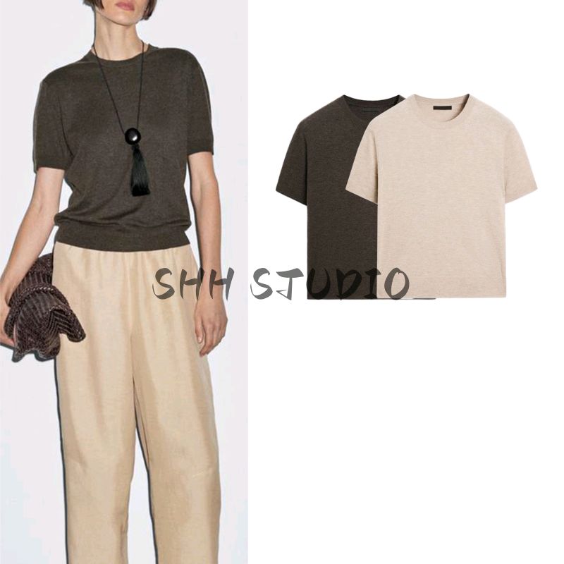 MD Spring/Summer New Arrival Women's Clothing Minimalist Casual Temperament Commute Basic Style round Neck Short Sleeve Knitwear 5664580