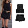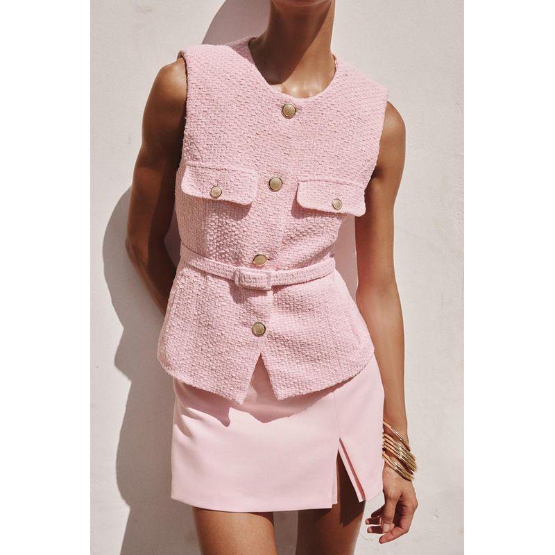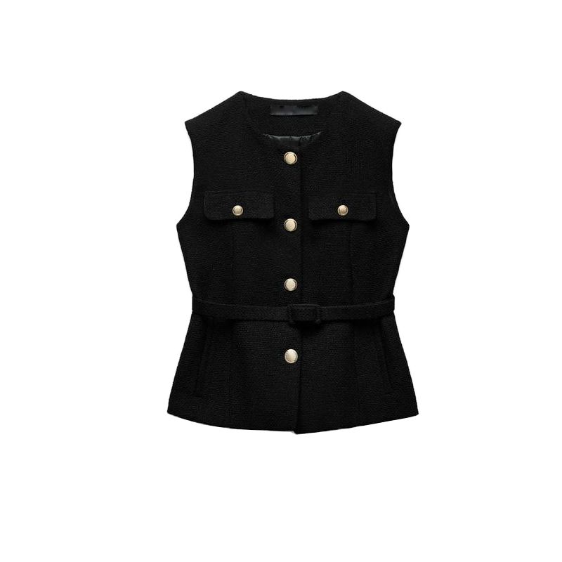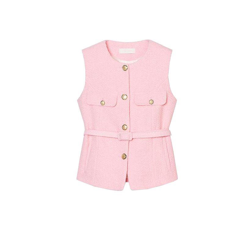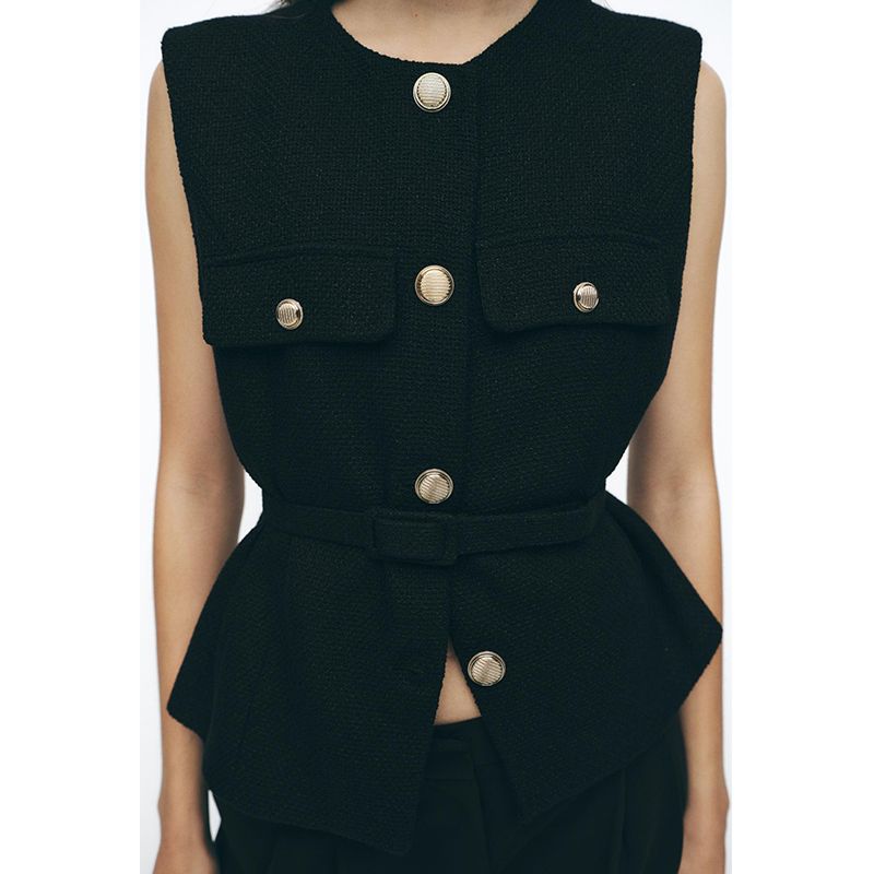 Spring and Summer New Women's Clothing Fashion Metal Clasp with Belt Punk Texture Vest Waistcoat 2132904