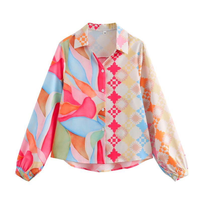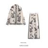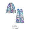 Kaslead New Arrival Women's Fashion Style Fashion Print Long Sleeves Shirt Casual Straight Trousers Suit