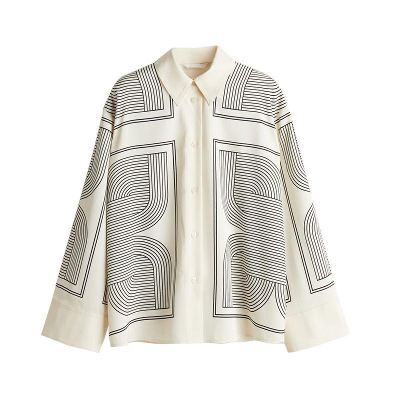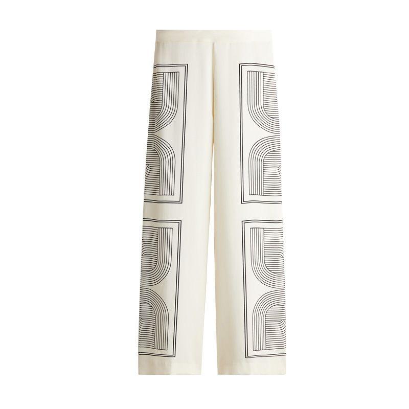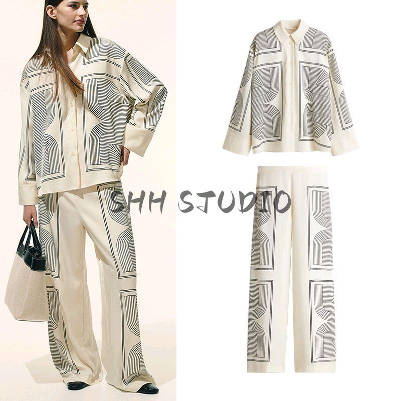Женская весенняя одежда Новый китайский стиль Повседневные прямые брюки с высокой талией 1261232 Принт Диагональная ткань Рубашка 1280846